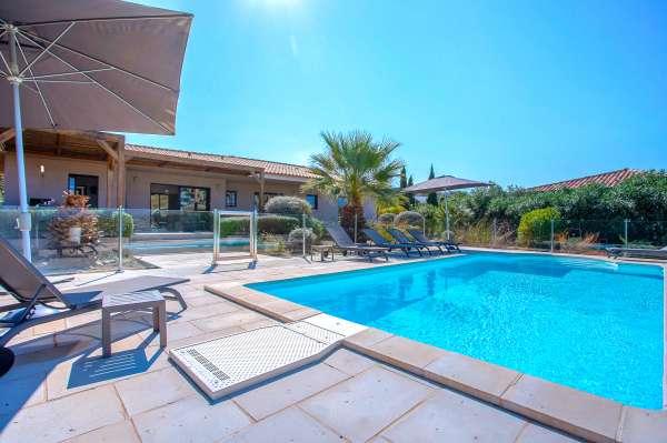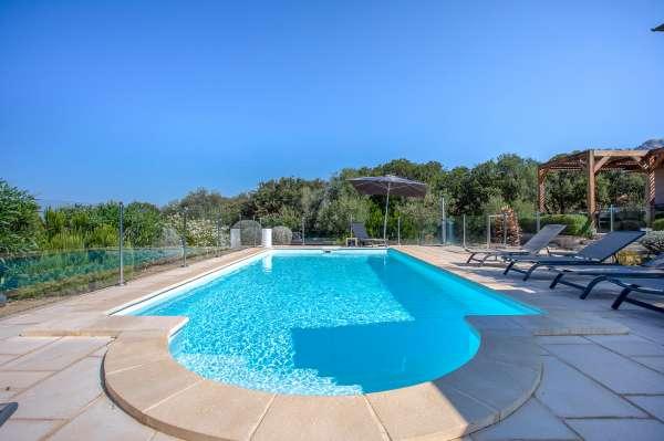 It has a large terrace and an 8m x 4m swimming pool secured by a barrier.