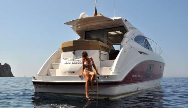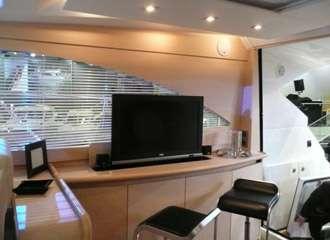 Le luxe au tempérament Méditerranéen ! Taillée pour l'efficacité et pour la vitesse, la carène du Monte Carlo 47 a été spécialement développée pour optimiser les performances du système IPS (Volvo Penta). Ce choix technologique offre des avantages uniques : puissance des PODs, consommation optimisée, confort, gain d'espace, souplesse et maniabilité du bateau,piloté par le joystick qui simplifient à l'extrême les manœuvres de port. La conception innovante du Monte Carlo 47 allie l'esprit d'un Open à une architecture qui protège la timonerie. Un cockpit immense, le toit ouvrant et l'extension de taud de soleil électriques. Tout à bord a été imaginé pour vous faciliter la vie. Red Bulle est en version d'aménagement 3 cabines, avec une cabine avant V.I.P très spacieuse et une hauteur sous barrot très confortable. Beneteau Montecarlo 47 full option 2009 : - 2 puissants moteurs Volvo IPS 600 (435 cv) (30 nœuds+) - 3 cabines spacieuses - Hardtop électrique et garage à bateau - Full option : Passerelle hydraulique et annexe pneumatique rapide, groupe électrogène et air conditionné, lecteur de cartes et gps, pilote automatique et radar, réfrigérateur et grill de cockpit, 3 télévisions lcd, lave-vaisselle, lave-linge, … - Port d'attache en corse du sud à Ajaccio. - Location à la semaine avec ou sans skipper. Opportunité rare pour ce type de bateau à la location en méditeranée !