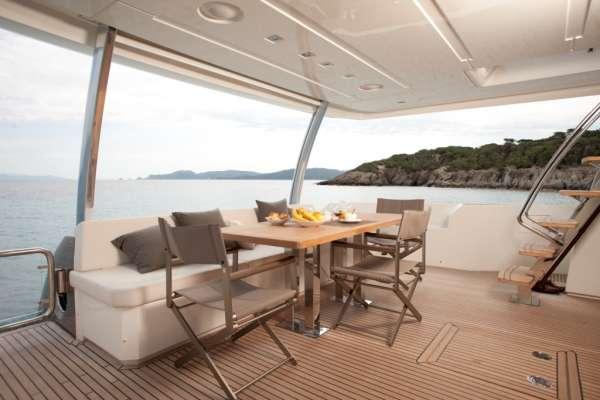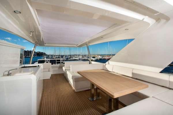 Ce motoryacht a été pensé pour profiter de la mer au large comme à l'escale, avec plusieurs lieux de vie sur le pont : vaste cockpit, et immense terrasse sur le flybridge ... La suite propriétaire, située à l'avant, est un espace de quiétude et intime, baigné de lumière. Elle se compose d'un accès privatif, d'un grand dressing, d'un large bureau, d'une salle bain indépendante… Des espaces distincts somptueux, une circulation facile, une excellente tenue en mer… L'ADN PRESTIGE reconnaissable entre tous. AMENAGEMENT : · Cabines : 4 · Configuration : 2 Doubles / 2 Twins · 3 Salles de bains · Invités : 8 · Equipages : 2 EQUIPEMENTS : · Plateforme de bain Hydraulique · Bain de soleil avant et arrière · Home Cinéma BOSE · Climatisation tropicale · Annexe · Stabilisateur Gyroscopique SEAKEEPER (contre le mal de mer) · TV avec lecteur DVD dans le salon et toutes les chambres · Plaque de cuisson GRILL au fly Jeux acquatiques : Seabob / Paddle / Masques Palmes