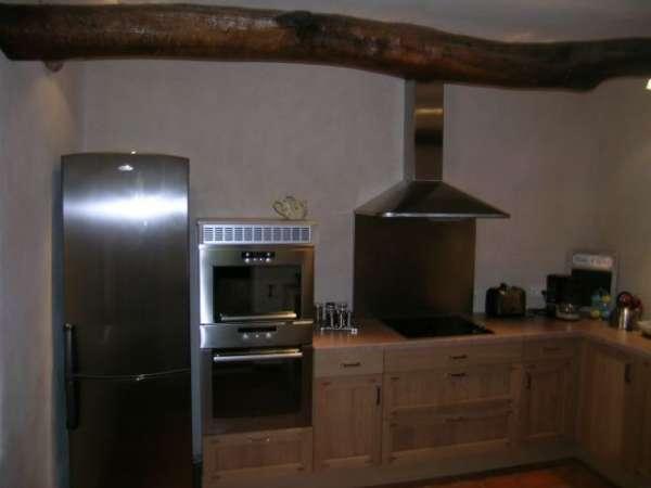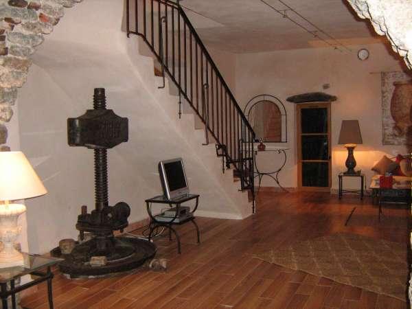 Poutres apparentes, roue à aubes apparente dans une des chambres, pressoir à huile d'origine dans un des séjours de la villa.