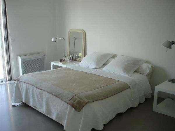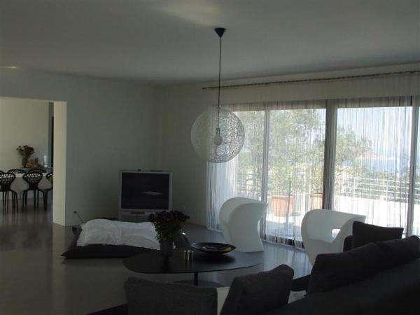 Décoration sobre et contemporaine. Chambre de maitre avec dressing et salle de douche. Le séjour et la cuisine ont accès à une belle terrasse avec vue mer.