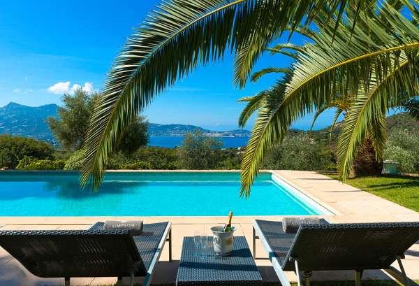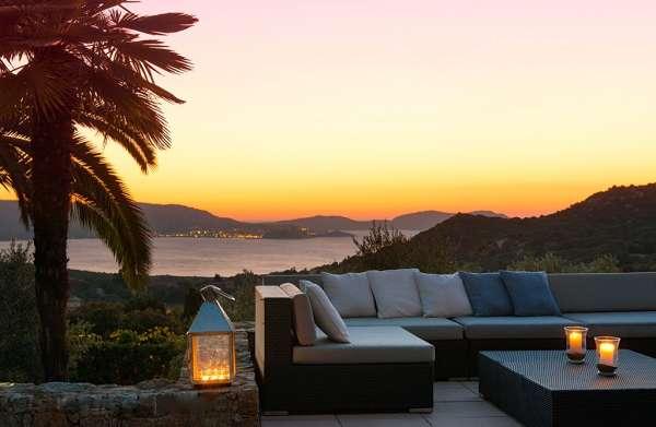 Spacieuse villas de grand standing climatisée avec piscine et jardins privatif, implantées sur des restanques en pierre, avec une vue panoramique sur le golfe de Calvi et sur les sommets enneigés des montagnes toutes proches. INTERIEUR :
