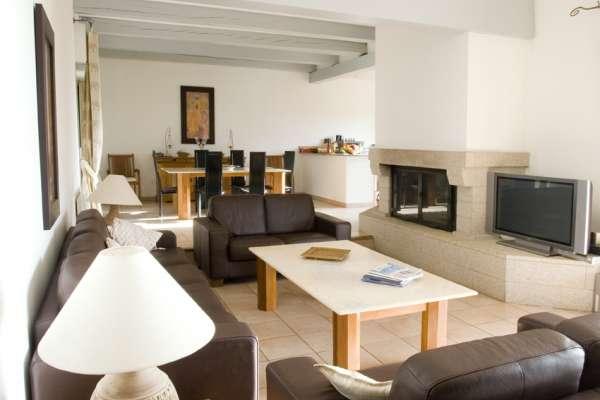 Séjour de 120m2 avec cheminée et TV Home Cinéma -
